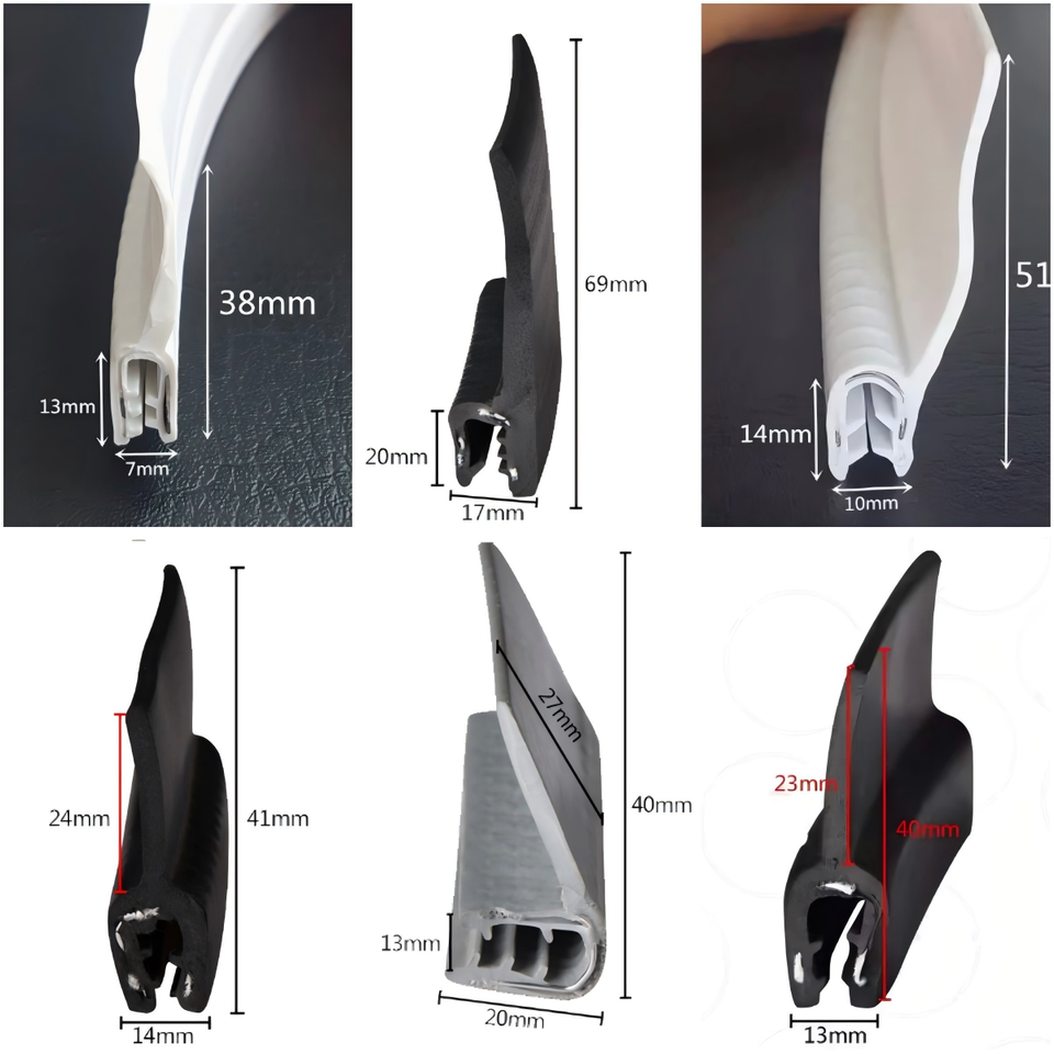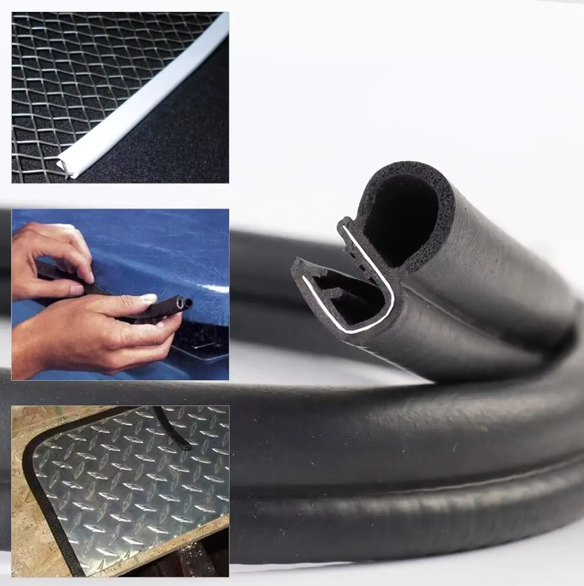 แถบยางซีลขอบประตูรถยนต์แบบ U ชนิดสามชั้นผสมผสาน แถบยางปิดขอบประตูตู้ ทำจากยาง EPDM