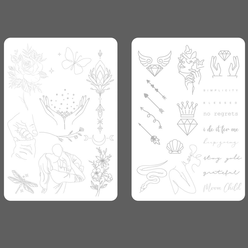 ที่กําหนดเองเล็กๆสักฝึกผิวการออกแบบผีเสื้อปลากระต่ายนกดอกไม้รูปแบบ Fine Line Tiny TATTOO ผิวปลอม