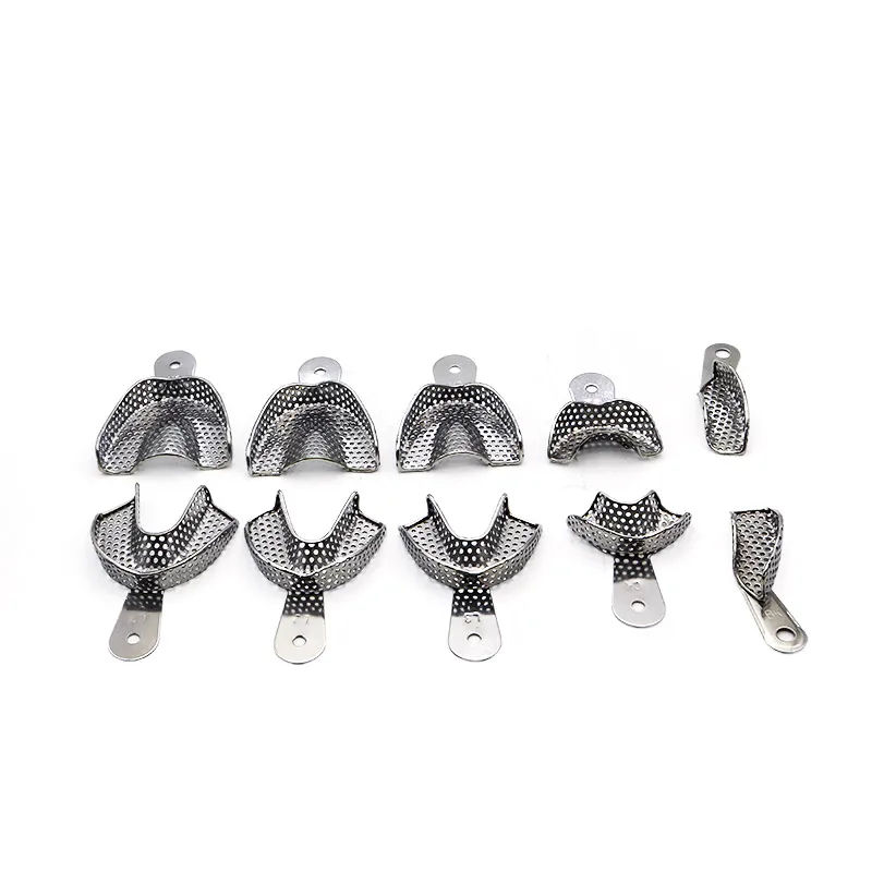 การออกแบบชั้นนําที่กําหนดเองคุณภาพระดับพรีเมียมทันตกรรม Autoclavable ถาดความประทับใจโลหะสแตนเลส S M L เครื่องมือ