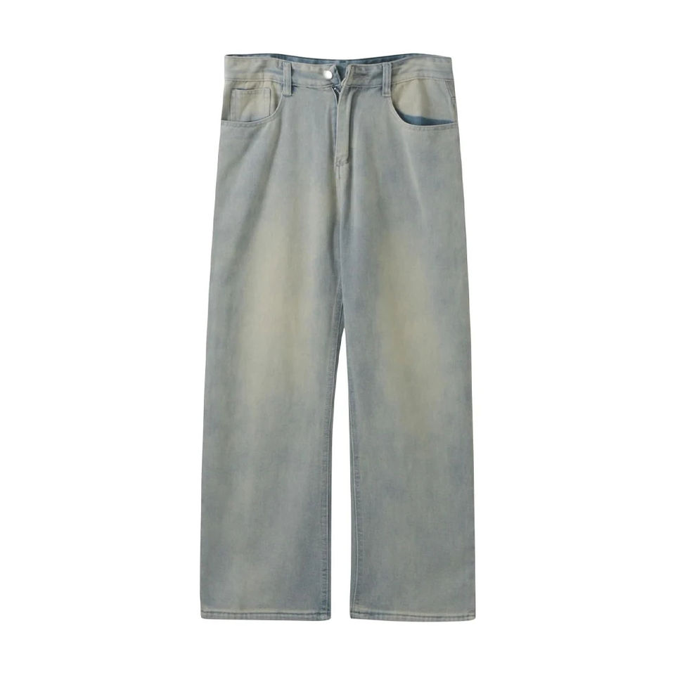 กางเกงยีนส์ทรงหลวมคุณภาพสูงแบบสั่งทำพิเศษ ล้างสีแบบแอซิดวอช ทรงแบ็กกี้ ขาดแบบเลเซอร์ ขากว้าง ผลิตสำหรับผู้ชาย