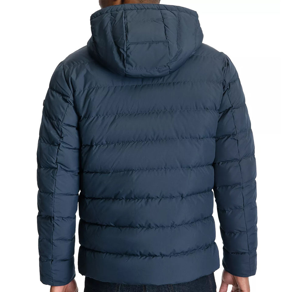 เสื้อแจ็คเก็ตพัฟเฟอร์คุณภาพสูงแบบกำหนดเองสำหรับผู้ชาย พร้อมฮู้ด สีน้ำเงิน กันน้ำ คุณภาพสูง สไตล์สตรีทแวร์ เสื้อแจ็คเก็ตขนเป็ดสำหรับผู้ชาย