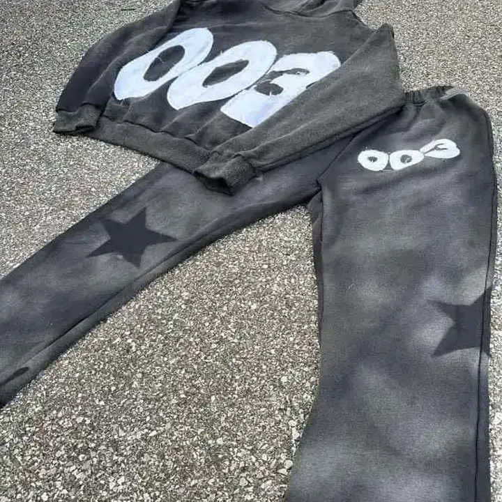 ชุดเซ็ตฮู้ดดี้และกางเกงขายาวผ้าเฟรนช์เทอร์รี่แบบซิป ลวดลายปักสไตล์วินเทจฟอกสี สำหรับผู้ชาย รุ่นยอดนิยม รับผลิตตามแบบ OEM