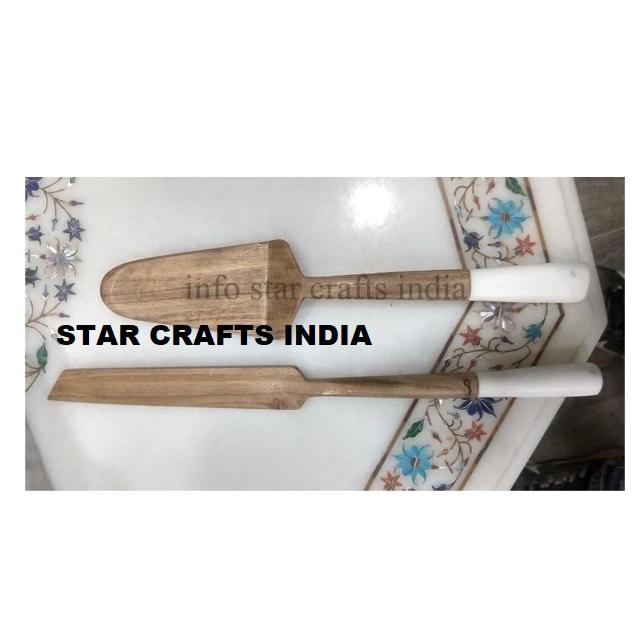 ชุดมีดตัดเค้กด้ามทำจากไม้สำหรับงานแต่งงานทำจากสแตนเลสทนทานพร้อมลูกปัดไม้ธรรมชาติ