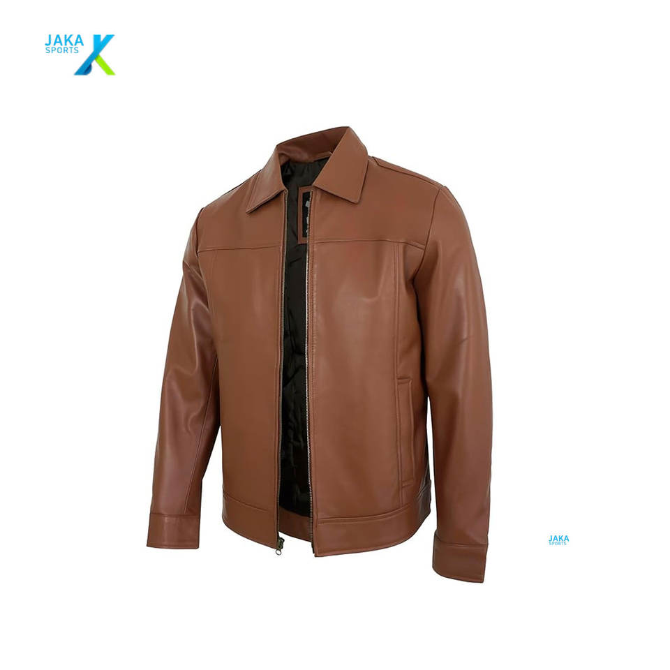 ชุดวอร์มผู้ชายแบบสั่งทำพิเศษ หนังแกะแท้ คอจีน หนังแท้ กันลม ผ้าแคนวาส โลโก้ด้านหน้า ชุดลำลองสไตล์สปอร์ต