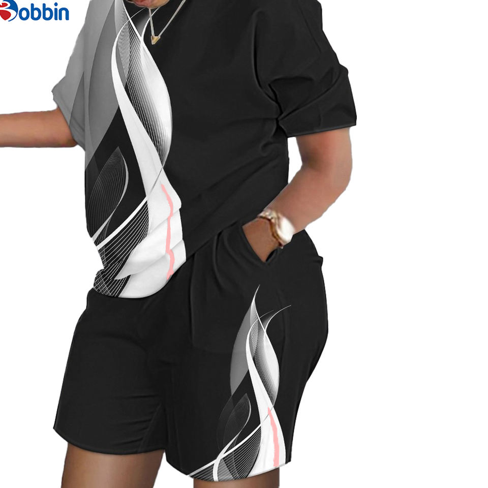 ชุดเซ็ตแฟชั่นฤดูร้อนสำหรับผู้หญิง 2 ชิ้น เสื้อยืดและกางเกงขาสั้นพิมพ์ลาย ชุดลำลองสไตล์สปอร์ตหลวมๆ แบบสั่งทำได้