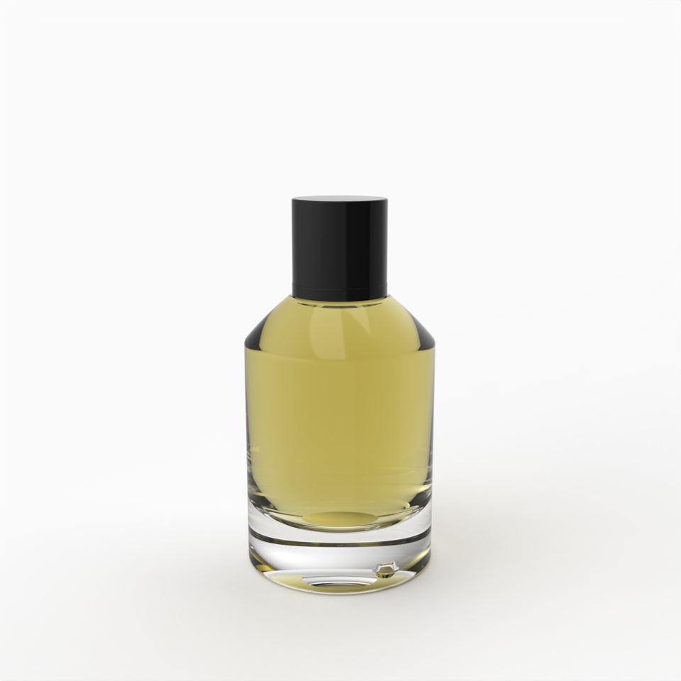 ขวดน้ำหอมแก้วใสแบบกำหนดเอง ขนาด 100 มล. สีดำเงา พร้อมหัวปั๊มแบบเรียบง่าย และอุปกรณ์เสริมพลาสติก