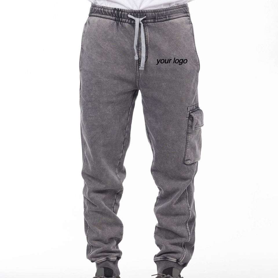 กางเกงจ็อกเกอร์สตรีทแวร์สุดฮิต ผ้าฝ้ายฟลีซฟอกสีซีดแบบแอซิดวอช กางเกงวอร์มทรงจ็อกเกอร์ฟอกสีสำหรับผู้ชาย