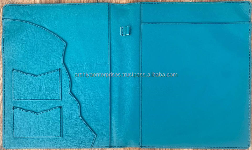 แฟ้มหนังนิ่มสีเทอร์ควอยส์ออกแบบได้ตามต้องการแฟ้มซองหนังแท้แบบมีซิปจัดเก็บเอกสารไปโรงเรียน A4ตามต้องการ