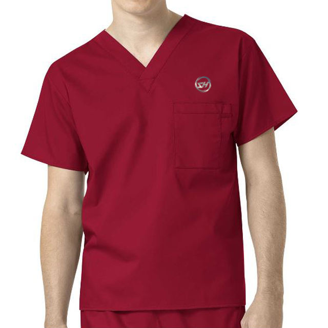 ชุดยูนิเซ็กซ์สำหรับบุคลากรทางการแพทย์แบบสั่งทำพิเศษ คอวี ผ้าทอผสมคอตตอนและโพลีเอสเตอร์ พร้อมบริการพิมพ์โลโก้ตามสั่ง สำหรับใช้ในโรงพยาบาล