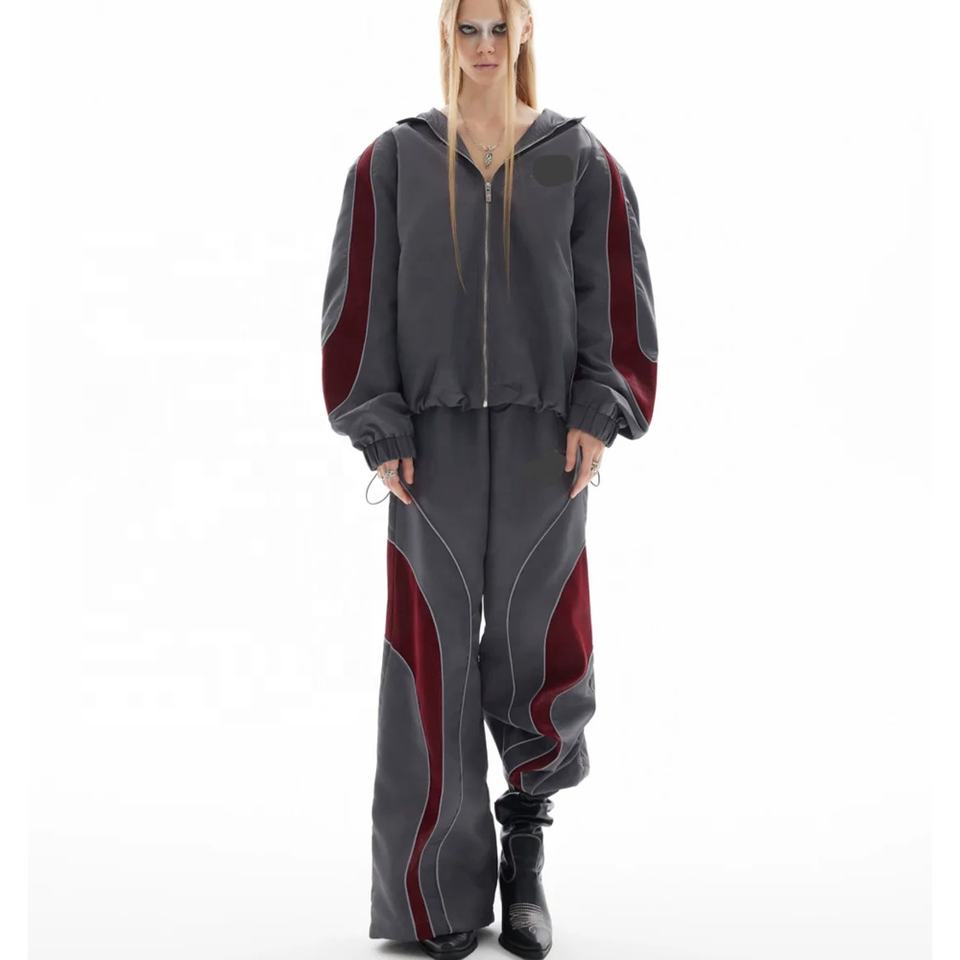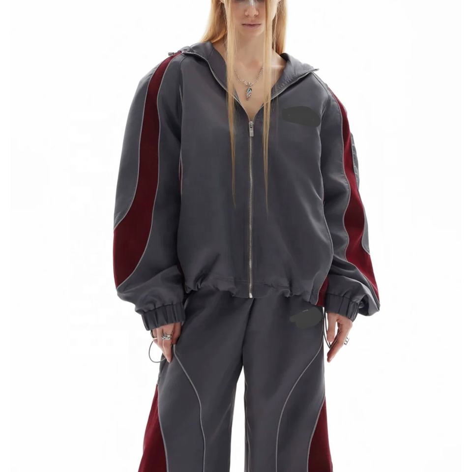 ชุดวอร์มสองชิ้นแบบถุงใส่ได้ทั้งชายและหญิงซิปซับในสีพื้นชุดวอร์มสไตล์สตรีทป้ายโลโก้ตามสั่ง