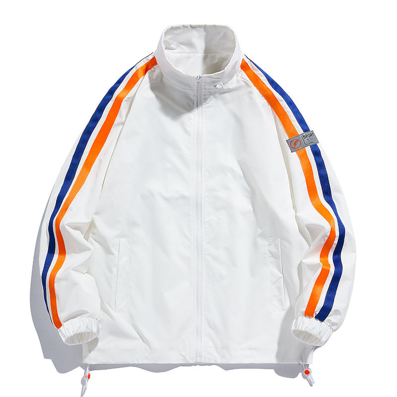 แจ็กเก็ตกันลมมีซิปสำหรับผู้ชายเสื้อแจ็กเก็ตกลางแจ้งโลโก้ขนาดพิเศษออกแบบได้ตามต้องการ