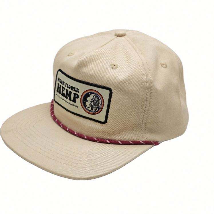 หมวกแคมป์ปิ้งแบบ 5 ชิ้นส่วน ปรับแต่งได้ ไม่มีโครงสร้าง พร้อมเชือกและปีกหมวกแบบแบน ปักลายปักแบบกำหนดเองได้