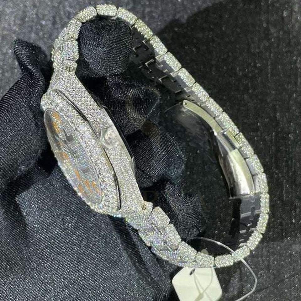 นาฬิกากลไกจักรกลหรู VVS Moissanite กำหนดเองได้สำหรับผู้ชายคุณภาพพรีเมี่ยมจอแสดงผลแบบแอนะล็อกสายทองคำขาวสไตล์ฮิปฮอป