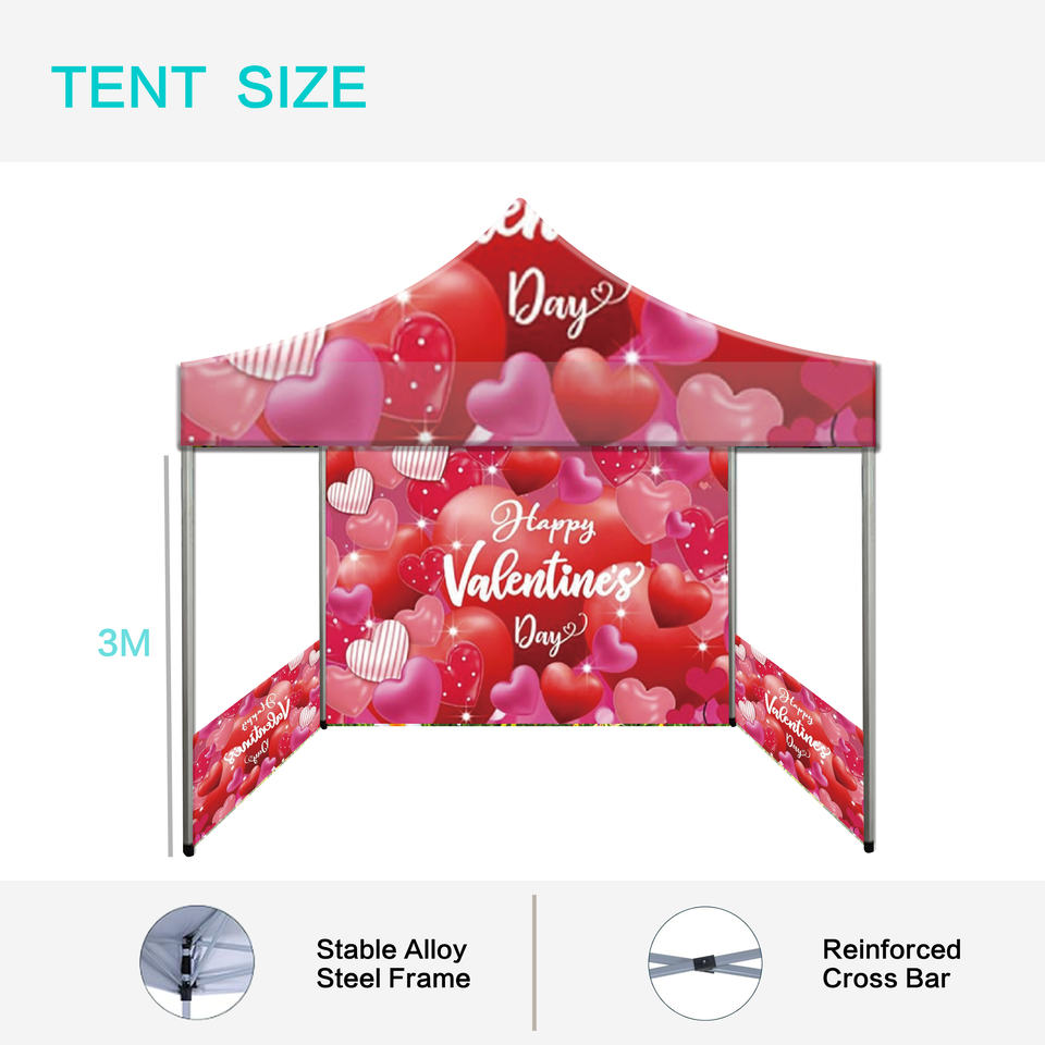 เต็นท์กันแดดพับได้ขนาด 3x3 เมตร สำหรับวันวาเลนไทน์ โครงอะลูมิเนียมอัลลอยด์ ผ้าโพลีเอสเตอร์ 300D สำหรับกิจกรรมส่งเสริมการขายกลางแจ้ง
