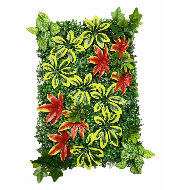 แผงผนังพืชเทียมสำหรับตกแต่งในร่มที่กำหนดเองสวนแนวตั้งแผงหญ้าเทียมไม้เนื้อแข็งสีเขียวเทียมสำหรับตกแต่งในร่มกลางแจ้ง
