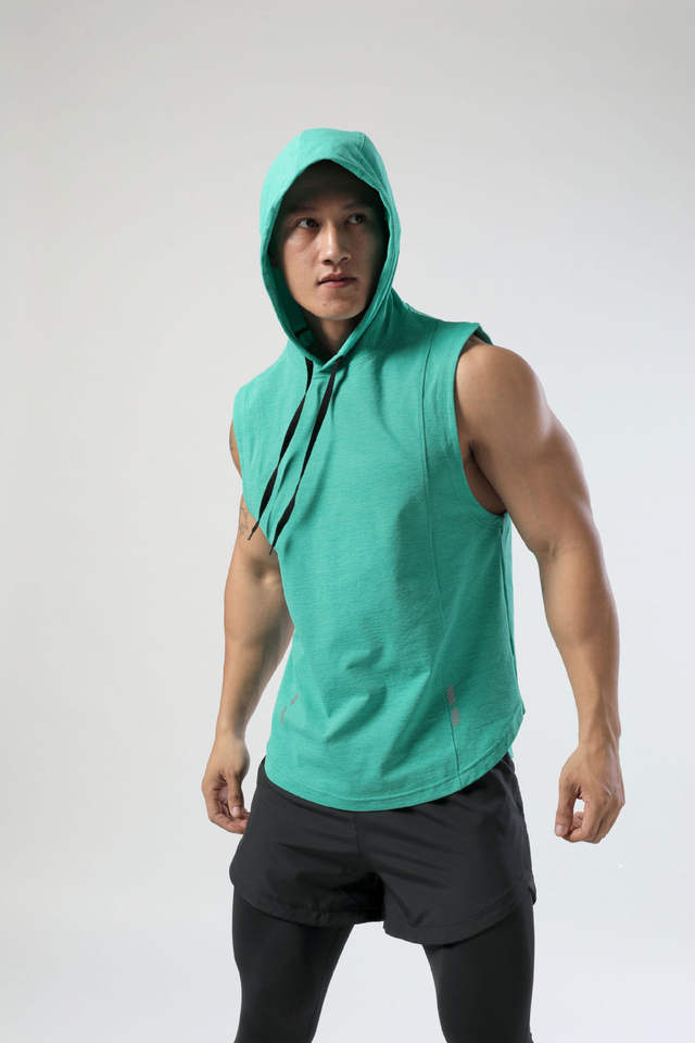 เสื้อกั๊กออกกำลังกายผู้ชายแบบกำหนดเอง เสื้อกล้ามกีฬาแห้งเร็ว เสื้อกั๊กออกกำลังกายฤดูร้อน เสื้อกั๊กกีฬาระบายเหงื่อพร้อมฮู้ด