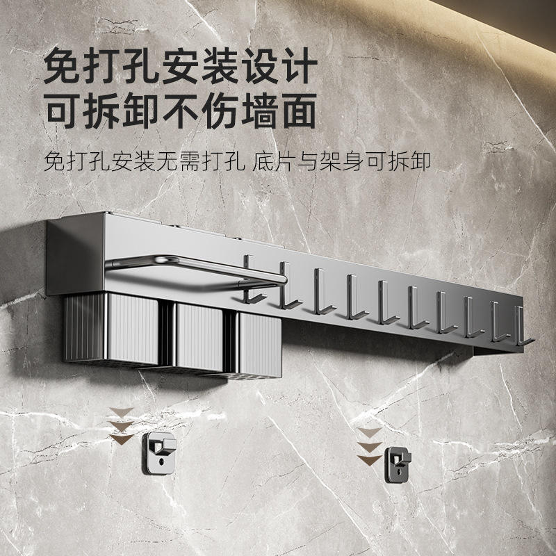 ที่แขวนมีดติดผนังแบบกำหนดเองได้ ทำจากเหล็กกล้าคาร์บอน พร้อมที่เก็บตะเกียบ ติดตั้งง่ายไม่ต้องเจาะ สำหรับใช้ในครัว