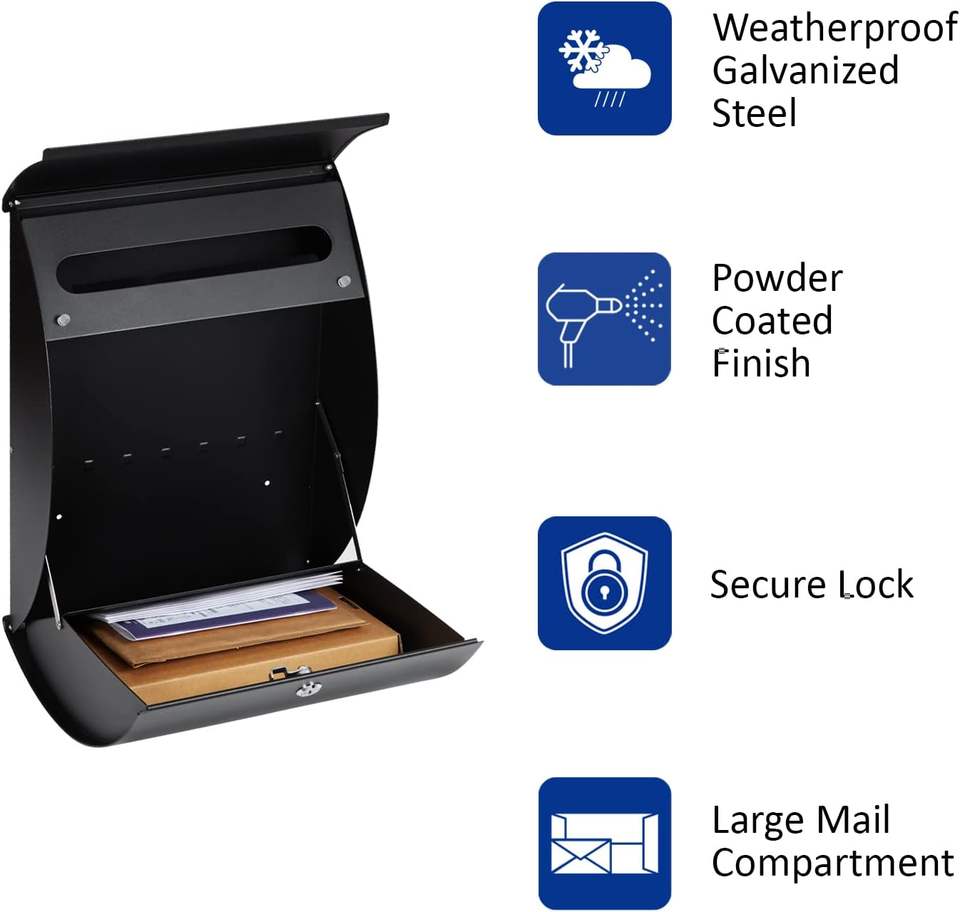 กล่องจดหมายเหล็กชุบสังกะสีแบบติดผนังแบบสั่งทำกล่องจดหมายความจุขนาดใหญ่ล็อค tediton ที่ทนทานของตกแต่งบ้าน OEM ODM