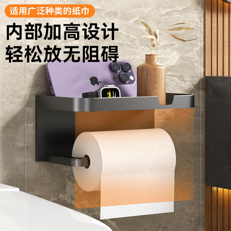 ที่ใส่กระดาษชำระแบบติดผนังสั่งทำพิเศษ รูปทรงสี่เหลี่ยมผืนผ้า สีดำ ชั้นวางมุมห้องอาบน้ำพร้อมราวแขวนผ้าเช็ดตัว ชั้นวางของในห้องน้ำที่ทนทาน