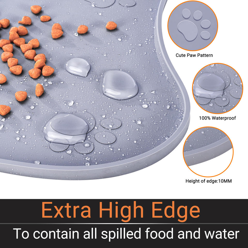 แผ่นรองอาหารสัตว์เลี้ยงซิลิโคนกันน้ำกันลื่นเกรดอาหาร ปรับแต่งได้ ทนทาน ขอบยกสูง สำหรับสุนัข/แมว