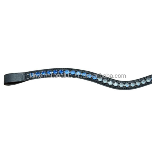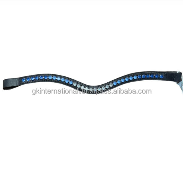 สายคาดหน้าผากม้าหนังแท้สีดำแบบเปล่า รูปทรงคลื่นแบบกำหนดเอง ประดับด้วยเพชรทรงกลมแถวเดียว