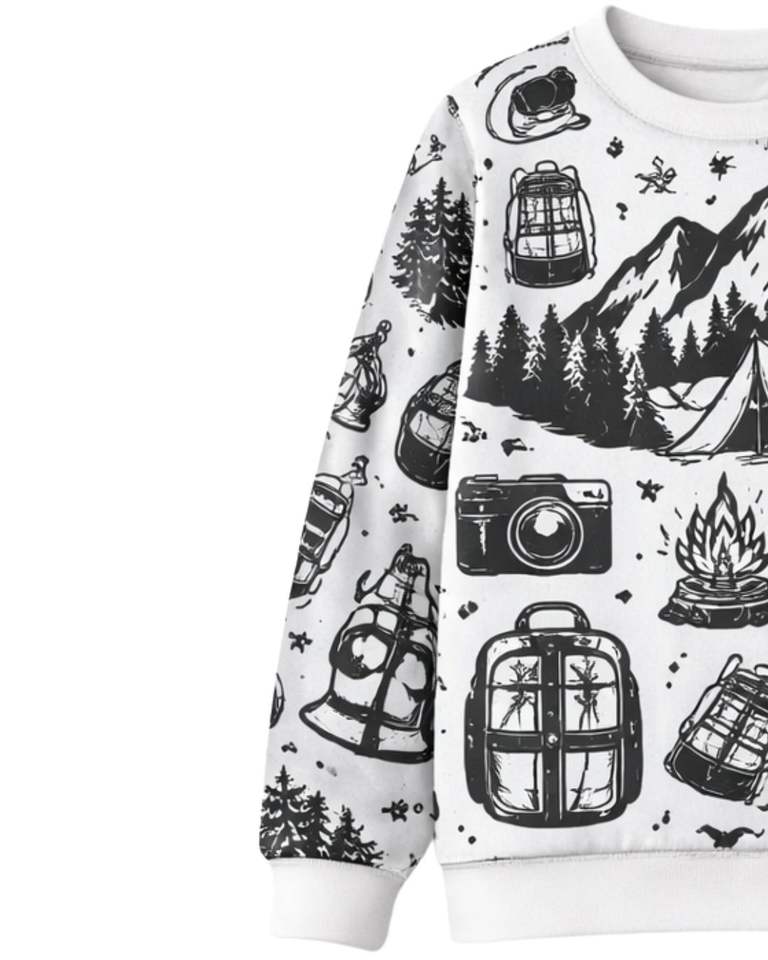 เสื้อสเวตเชิ้ตพิมพ์ลาย 3 มิติ ลายภูเขาสีขาวดำ แบบกำหนดเองได้ สำหรับผู้ชาย คอกลม สวมใส่สบาย แบบซับลิเมชั่น สำหรับฤดูใบไม้ร่วงและฤดูหนาว