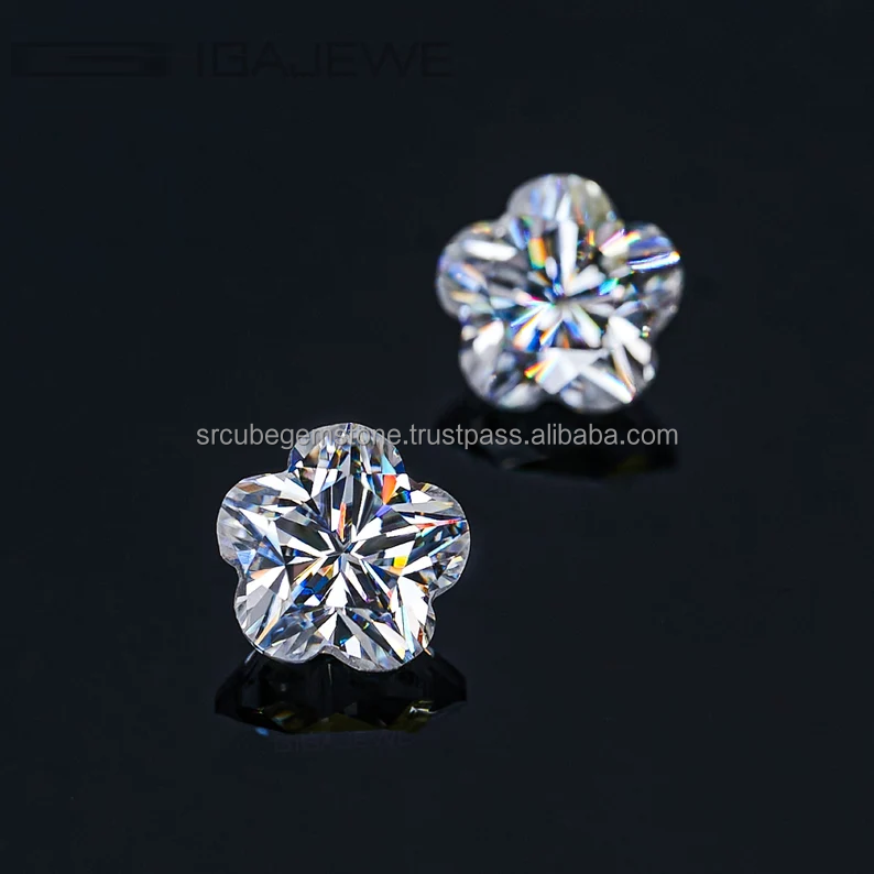 พลอยอัญมณีทรงหลวมตัดเป็นรูปดอกไม้สีขาวตัว D ตามสั่งเกรดดีเยี่ยมได้รับการรับรองสำหรับการทำเครื่องประดับ