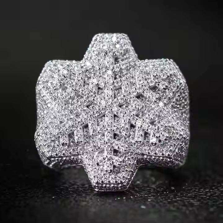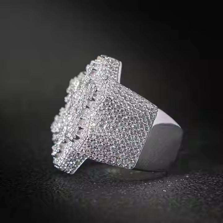 แหวนฮิปฮอปทองคำขาวแบบกำหนดเอง แบรนด์แฟชั่น แหวนผู้ชายชุบโรเดียมประดับเพชรโมอิสซาไนต์ทรงกลมเพาะเลี้ยง Luxira Jewels