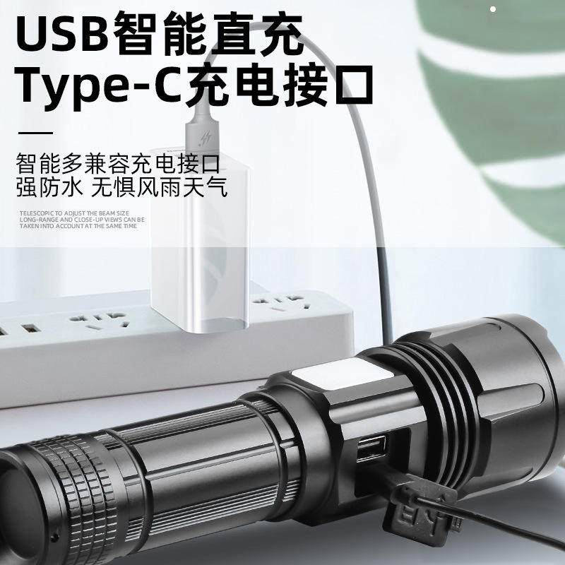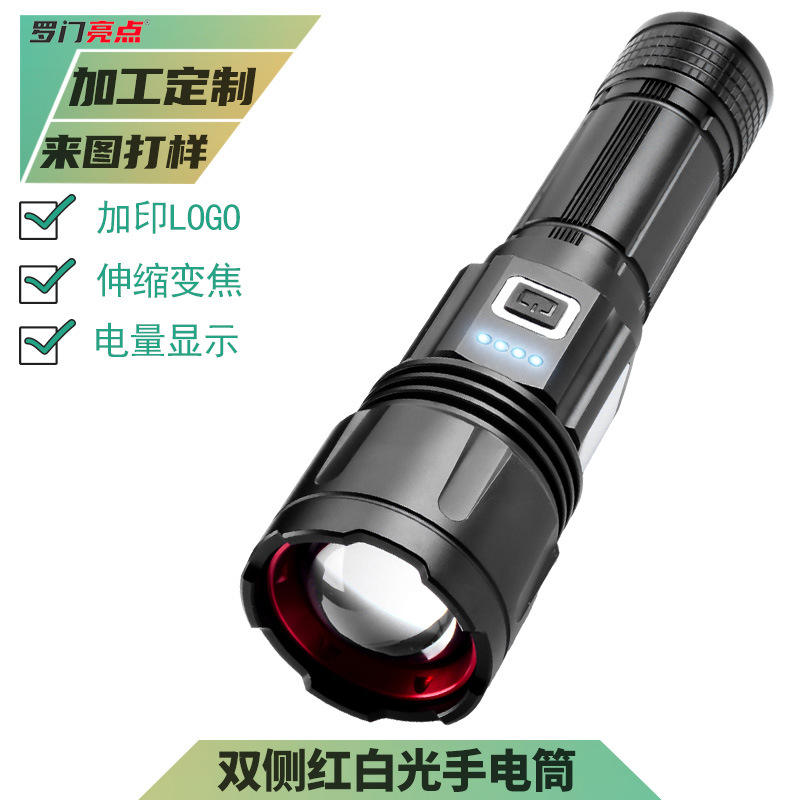 ไฟฉายเลเซอร์สีขาวแบบกำหนดเองได้ รุ่น T9780 ใช้แบตเตอรี่ 26650 ชาร์จซ้ำได้ ซูมได้ ตัวเรือนอลูมิเนียมอัลลอยด์ แสงสีแดงและสีขาว ไฟฉาย LED พกพา