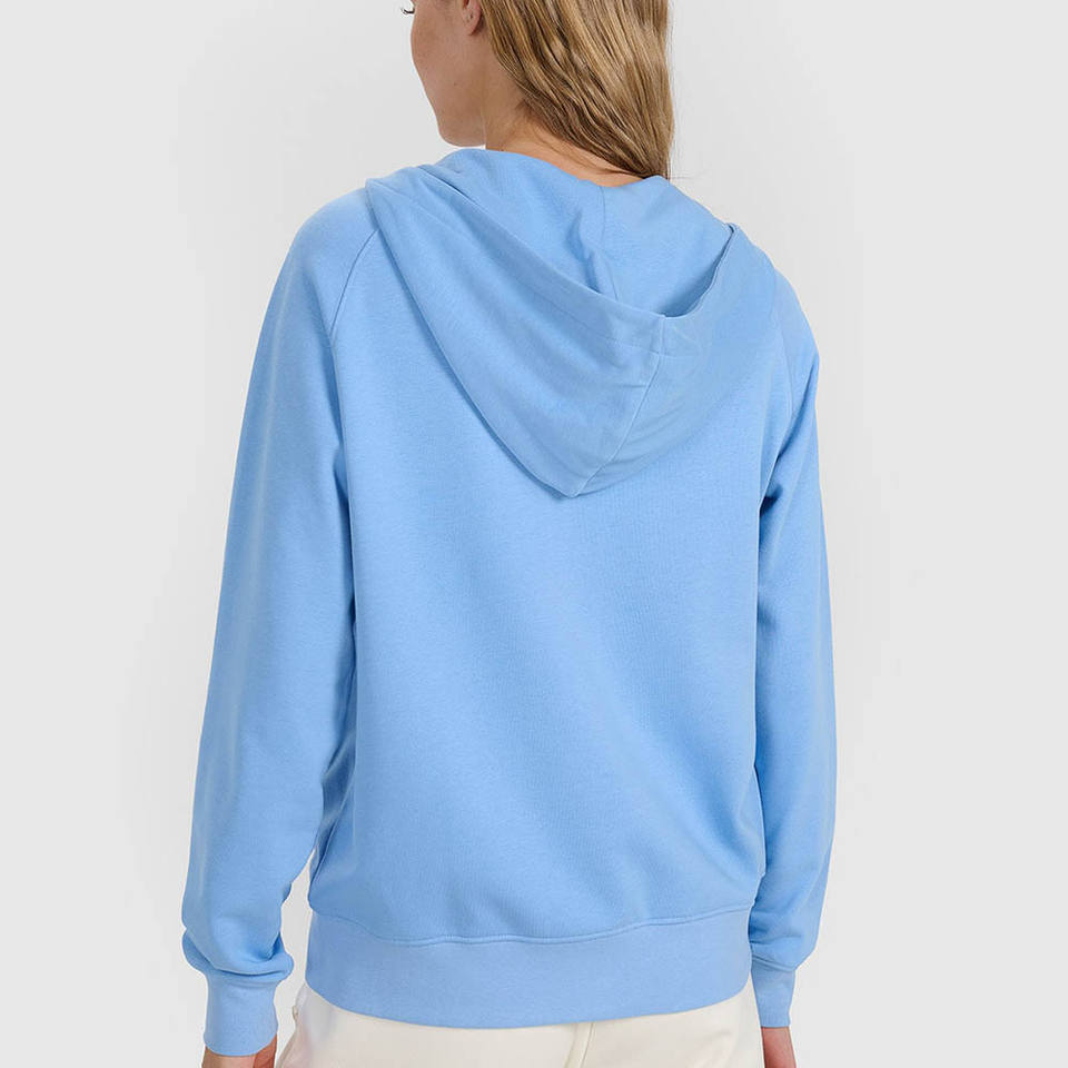 เสื้อฮู้ดแขนยาวเปิดไหล่ของผู้หญิงเสื้อฮู้ดสีฟ้าแบบคลาสสิกป้องกันรอยยับและระบายอากาศได้ดี