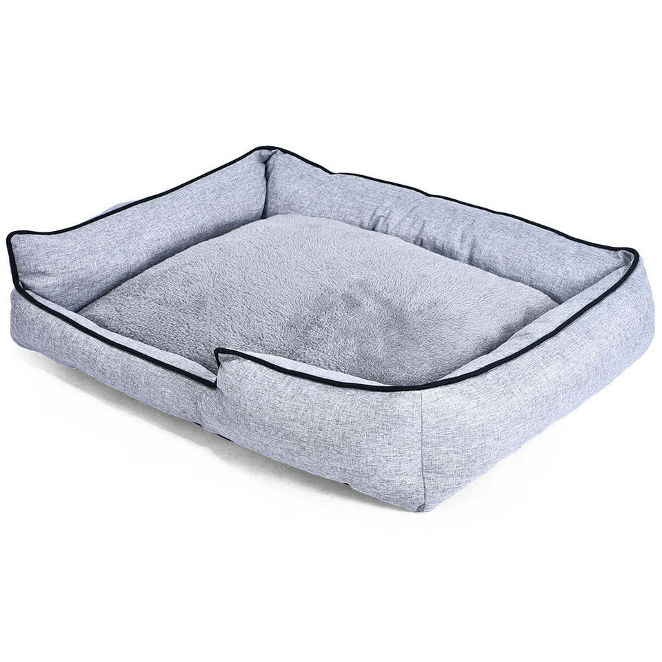 เตียงนอนสุนัขแบบสั่งทำขายส่ง ลายทาง รูปทรงสี่เหลี่ยมผืนผ้า พร้อมเบาะกำมะหยี่สั้นถอดได้ สำหรับแมว สไตล์คลาสสิก