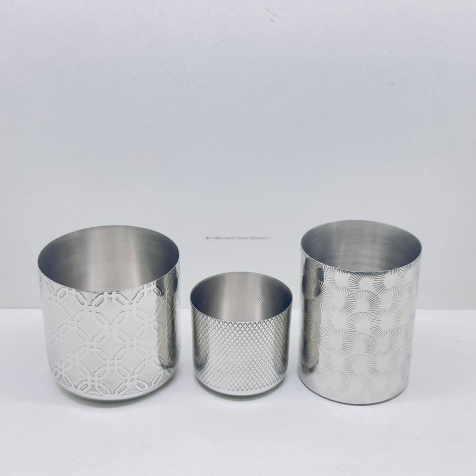 โหลเทียนเหล็กเปล่าภาชนะทรงกลมสำหรับทำเทียนขี้ผึ้งถั่วเหลืองปริมาณงานแกะสลักตามสั่ง