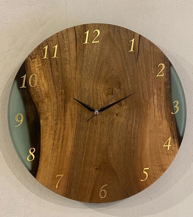 นาฬิกาไม้ติดผนัง/นาฬิกาแขวนผนัง,ดีไซน์ไม่เหมือนใครไม้แตก & เรซิ่นอีพ็อกซี่แบบกำหนดเอง