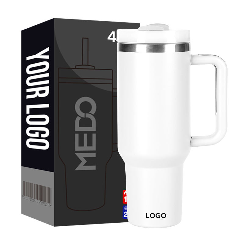 แก้วกาแฟแบบพกพาสั่งทำได้ ขายส่ง แก้วน้ำสแตนเลสสองชั้นเก็บความร้อนความเย็น ขนาด 40 ออนซ์ พร้อมหูจับและหลอด