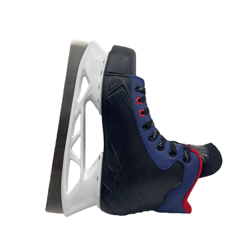 อุปกรณ์สเก็ตน้ำแข็งฮอกกี้แบนดี้แบบกำหนดเองสำหรับทีม รองเท้าฮอกกี้น้ำแข็งทำจากวัสดุสังเคราะห์สำหรับกีฬาฮอกกี้แบนดี้