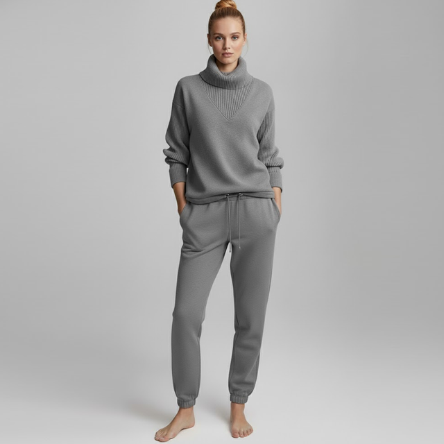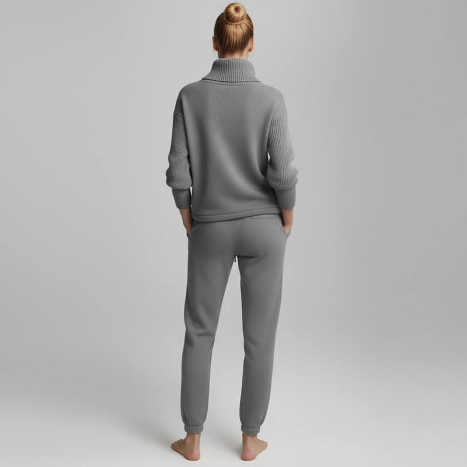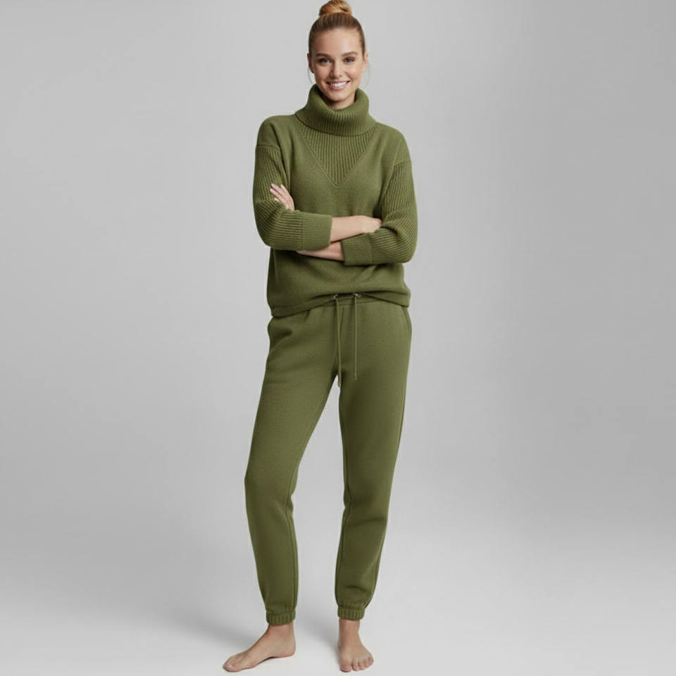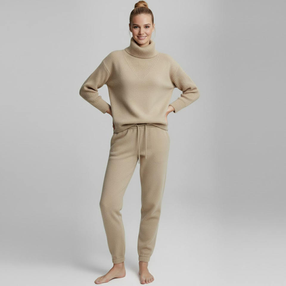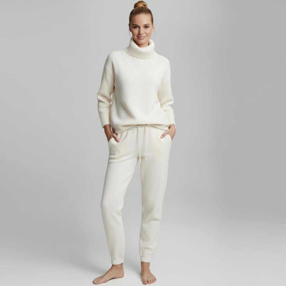 ชุดเสื้อสเวตเตอร์ไหมพรมถักแบบกำหนดเองสำหรับฤดูหนาว พร้อมกางเกงจ็อกเกอร์และโลโก้ด้านหน้าสำหรับผู้หญิง