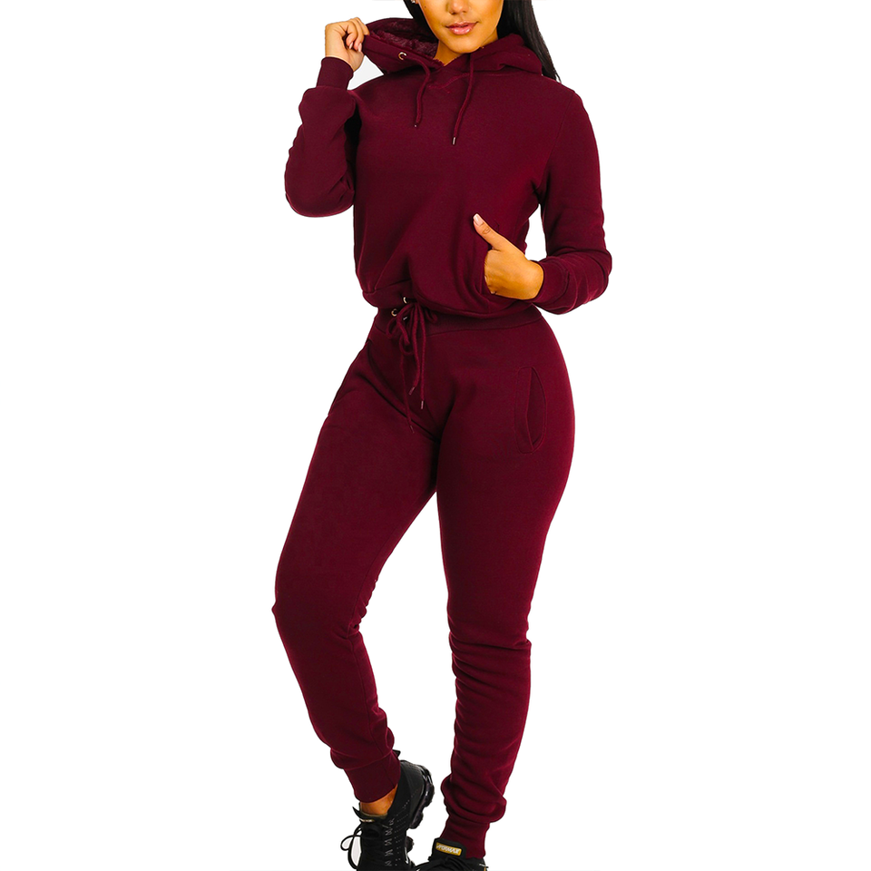 ผู้หญิงที่กําหนดเองจ๊อกกิ้งสวมเสื้อสวมหัวมีฮู้ดและชุด jogger จับคู่ชุดจั๊มสูทสตรีคุณภาพสูง