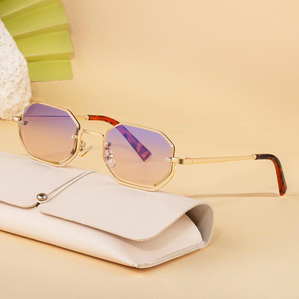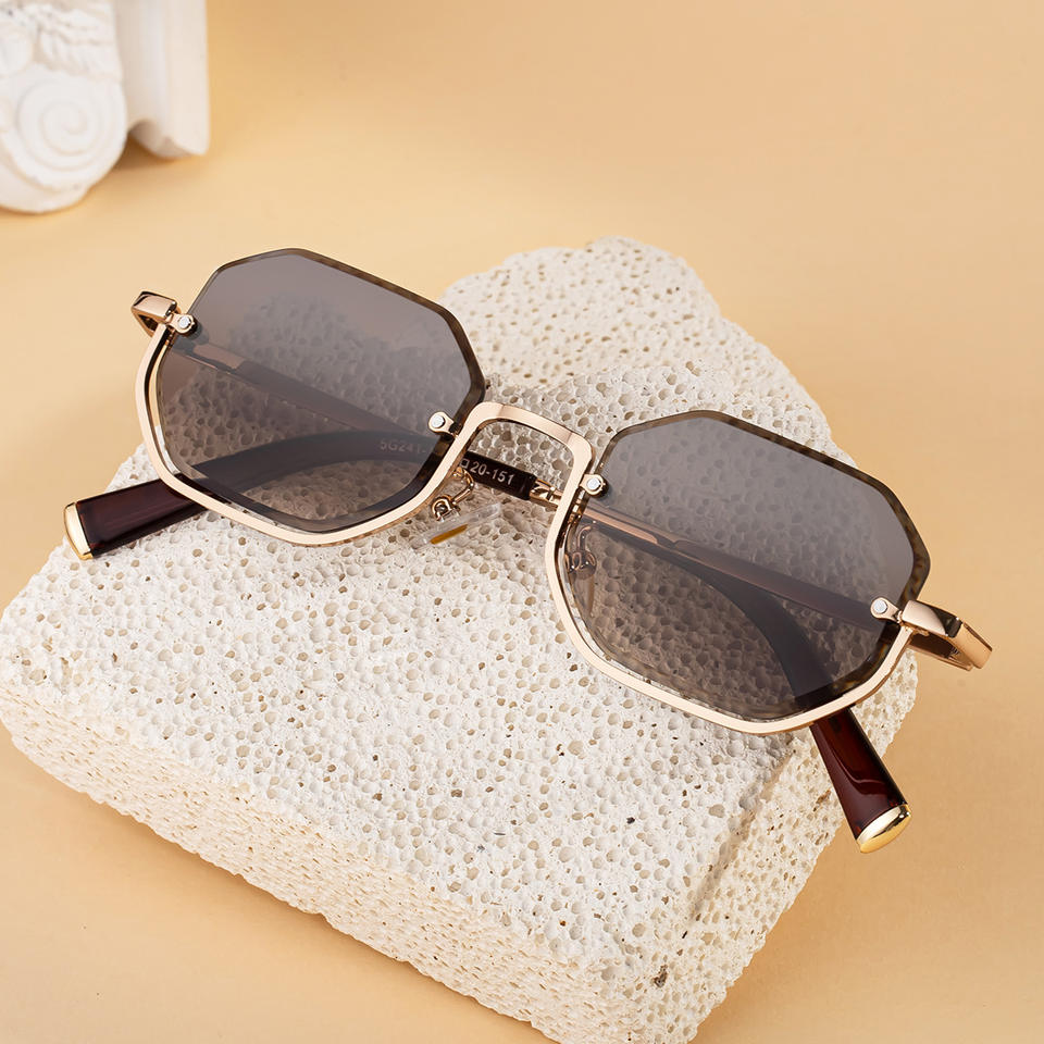 Customized Women Sunglasses UV400 PC Lens Instagram Style Half Rim Gold Frame Fashionable Sunshades for Women