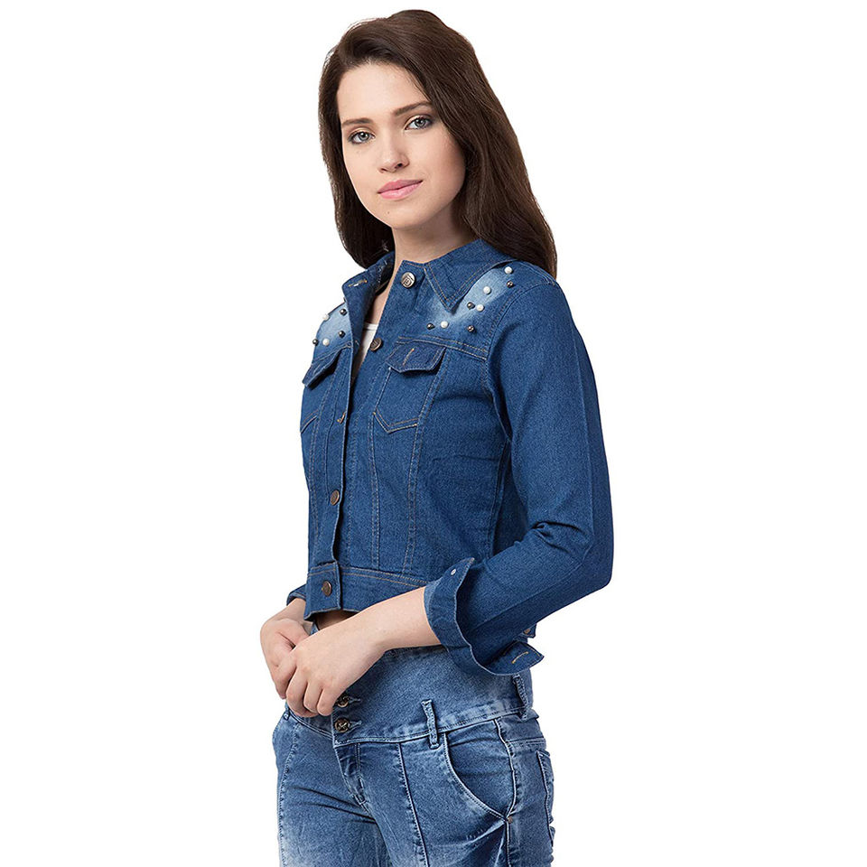 แจ็กเก็ตยีนส์แขนยาวสำหรับผู้หญิงแจ็กเก็ตยีนส์สไตล์สตรีทแขนยาวผลิตในปากีสถาน