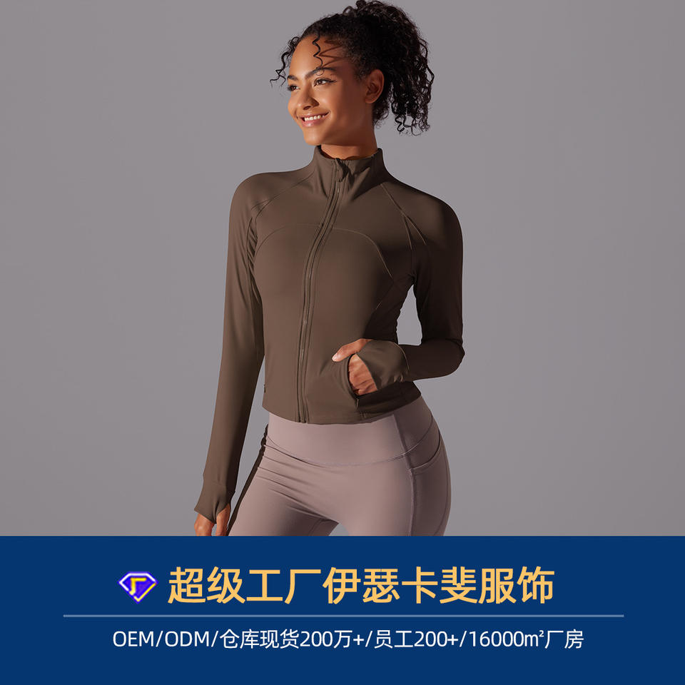 แจ็กเก็ตกีฬาแขนยาวของผู้หญิงคอตั้งมีซิปและเสื้อโยคะวิ่งฟิตเนส