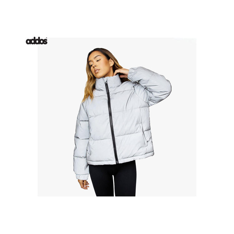 เสื้อแจ็คเก็ตขนเป็ดหน้าหนาวสำหรับผู้หญิงเสื้อคลุมขนเป็ดแบบปรับแต่งได้เสื้อโค้ทแบบมีฟองโลโก้ด้านหน้า