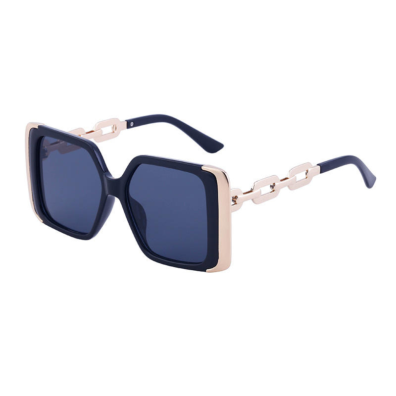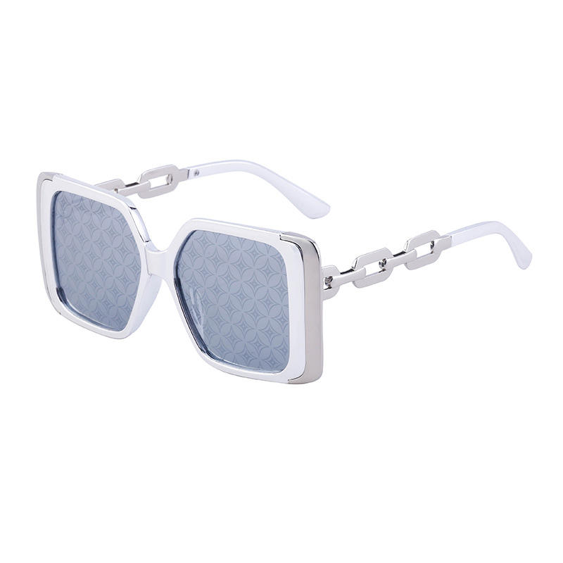 แว่นกันแดดทรงสี่เหลี่ยมขนาดใหญ่สำหรับผู้หญิง รุ่น ZS-98013 เลนส์ PC ป้องกัน UV400 ดีไซน์เก๋ไก๋สไตล์อินสตาแกรม กรอบโซ่แฟชั่น ลุคสตรีทสุดชิค