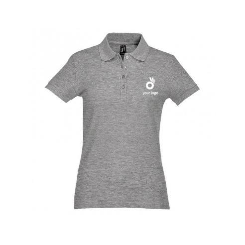 เสื้อโปโลผู้หญิงทรงเข้ารูป ระบายอากาศได้ดี ผลิตจากโพลีเอสเตอร์ ตกแต่งด้วยโลโก้ สวมใส่ได้ทั้งแบบลำลองและเป็นทางการ มีไซส์พลัสไซส์ให้เลือก แบบถักสั้น