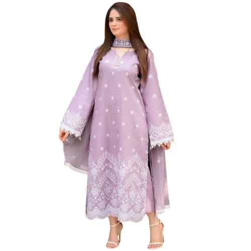 ชุดเดรสงานแต่งงานสำหรับผู้หญิงแบบสั่งตัดได้ ชุดชาลวาร์ คามีซสไตล์อินเดียที่สวยงาม ชุดเดรสผ้าลอนปักลาย พร้อมผ้าคลุมไหล่แบบเน็ต