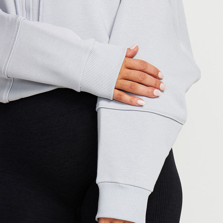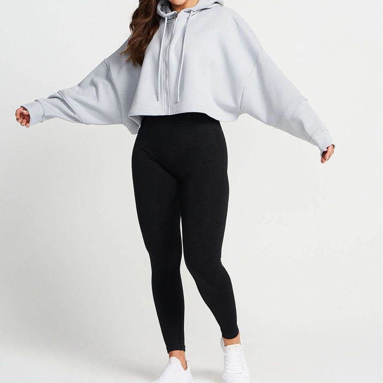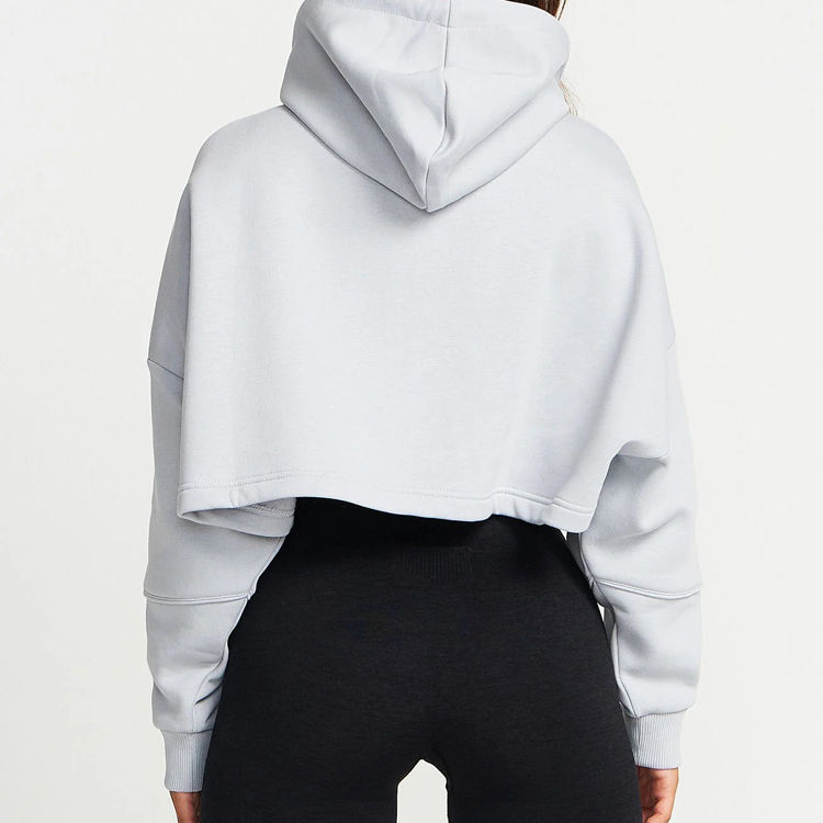 เสื้อฮู้ดดี้ครอปโอเวอร์ไซส์สำหรับผู้หญิง ผ้าฝ้ายผสมโพลีเอสเตอร์ ขนฟลีซ พิมพ์ลาย ล้างสี ทรงหลวม ไหล่ตก ซิป