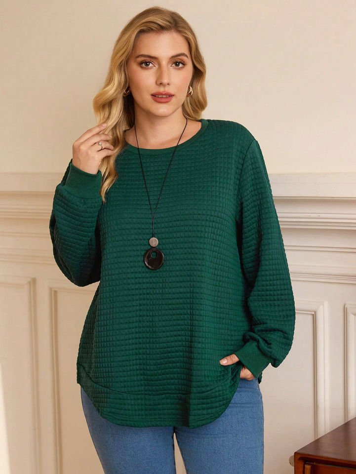 Customized Women's pullover sweatshirt pearl style Solid Color waffle knitted Sweatshirt Waffle knitted For Ladies