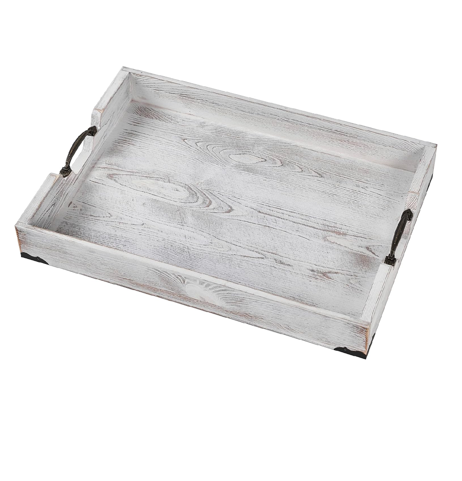 ถาดเสิร์ฟกาแฟดีไซน์แบบชนบทพิมพ์ลายสีขาวถาดเสิร์ฟกาแฟบ้านโรงแรม