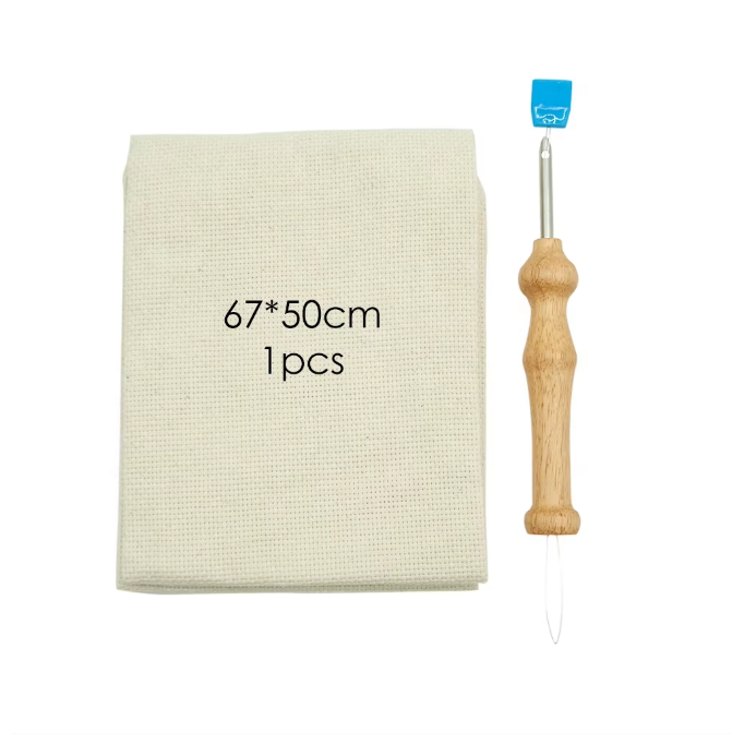 ชุดเข็มปักผ้าแบบมีด้ามไม้สั่งทำพิเศษ พร้อมผ้ามอนก์คลอธขนาด 67*50 ซม. และชุดไหมพรมสำหรับผู้เริ่มต้น มีสินค้าพร้อมส่ง