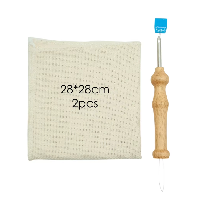 เข็มปักผ้าพร้อมด้ามจับไม้ ผ้าโมนก์ขนาด 67*50 ซม. และชุดไหมพรม