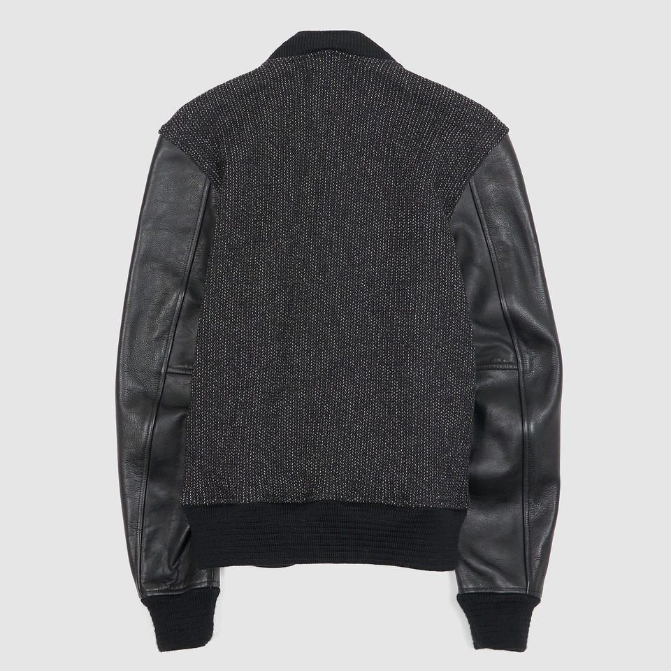 แจ็คเก็ตวาร์ซิตี้แบบกำหนดเองได้ ตัวเสื้อทำจากผ้าขนสัตว์ แขนเสื้อทำจากหนัง เหมาะสำหรับใส่ในร่มและกลางแจ้ง สำหรับผู้ชาย